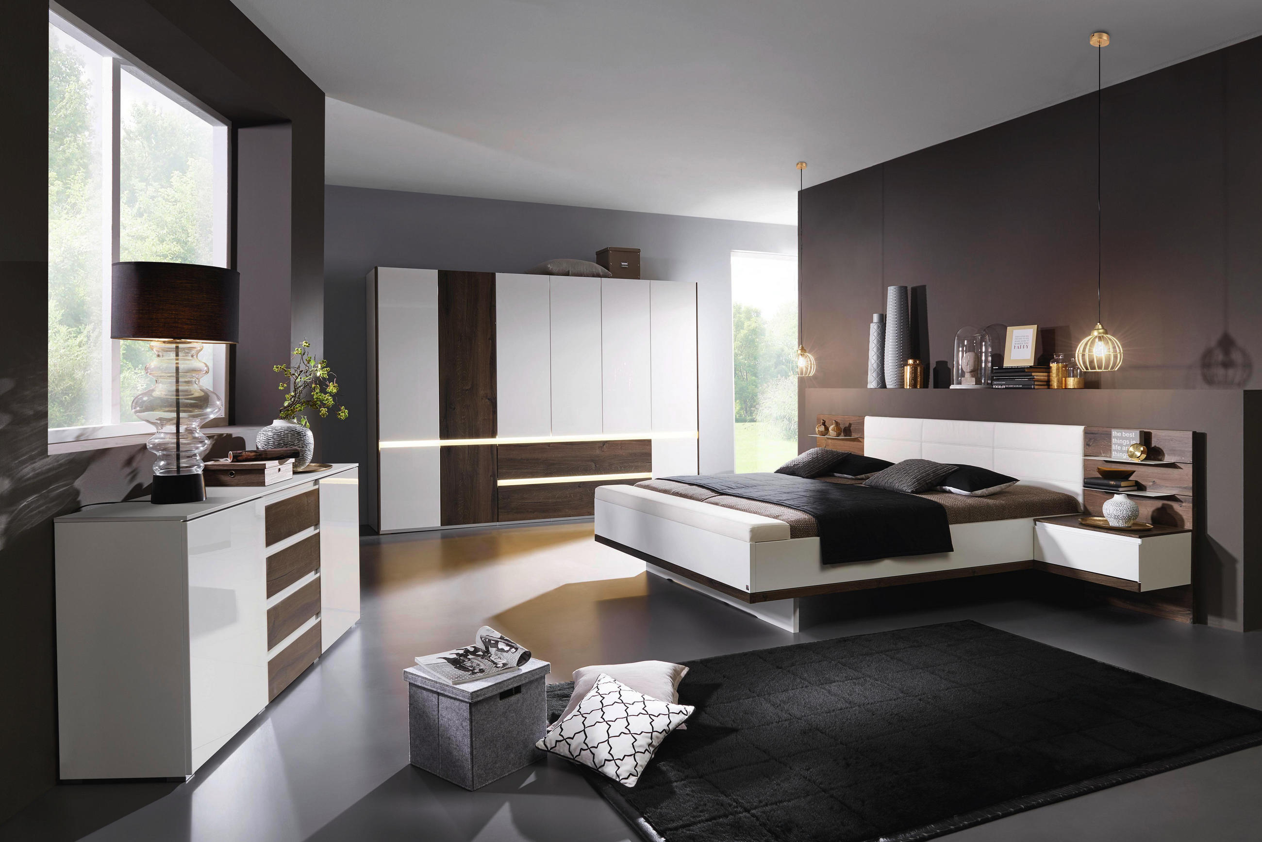 Einzigartig Schlafzimmer Schwarz Weiß Grau. Durch schwarz und grau die monotone ausstrahlung des weißen. Dunkler holzboden verleiht dem weißen schlafzimmer einzigartigen look.